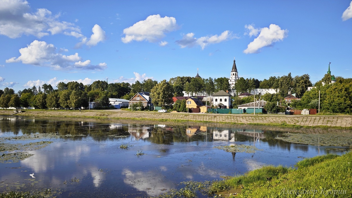 Сегодня, вопреки ожиданиям, я не повезу вас в экзотические дали. Вместо этого предлагаю прогуляться по набережной Александрова, месту, где история Руси дышит в затылок современности, а стальные рыбы сторожат покой реки Серой. Первое, что бросается в глаза - памятник Ивану Грозному, возвышающийся над извилистой лентой реки Серой. Царь, застывший в бронзе, сурово взирает на стены древнего Александровского кремля, что вырисовываются на противоположном берегу. Ирония? Не без этого! Ведь именно здесь, в этой тихой крепости, царь вершил судьбы Руси, а сегодня отсюда открывается один из самых умиротворяющих видов Подмосковья: золотые купола на фоне бескрайнего неба, отражение храмов в темной воде... И только вороны нарушают тишину, будто споря с тенью грозного правителя . Чуть дальше, у самой кромки воды, вас встретит изящная белоснежная ротонда. Её колонны, будто перенесенные из Петергофа, обрамляют лавочки, где так легко забыть о времени. Здесь местные художники ловят последние лучи со Пока