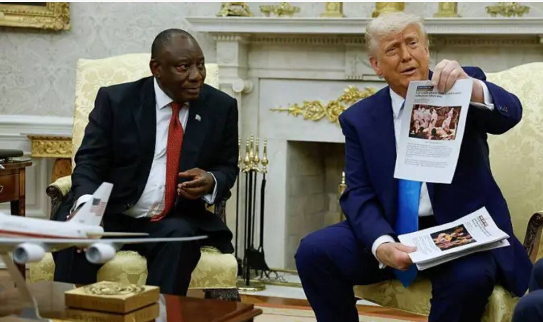 3. «Публичная порка» президента ЮАР в Овальном кабинете в мае была очень похожа на конфуз Зеленского. На встрече, которую во всем мире транслировали в прямом эфире, Трамп буквально обрушился на Рамафосу за «геноцид» африканеров (белые потомки голландских поселенцев в ЮАР, буры). Было понятно, что Рамафосу никто не предупредил, что на камеру всем покажут не только снимки издевательств и убийств, но и видео, на котором оппозиционеры призывают «стрелять в буров».