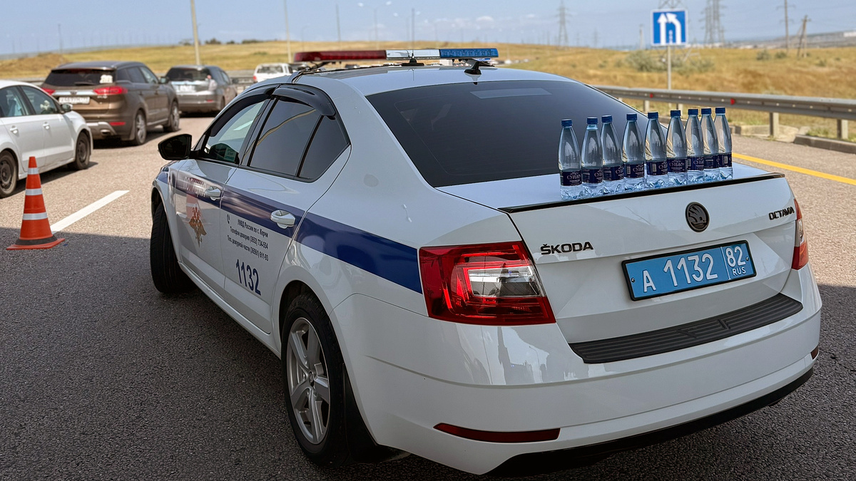 В Крыму жара такая, что гаишники отпаивают водителей водой