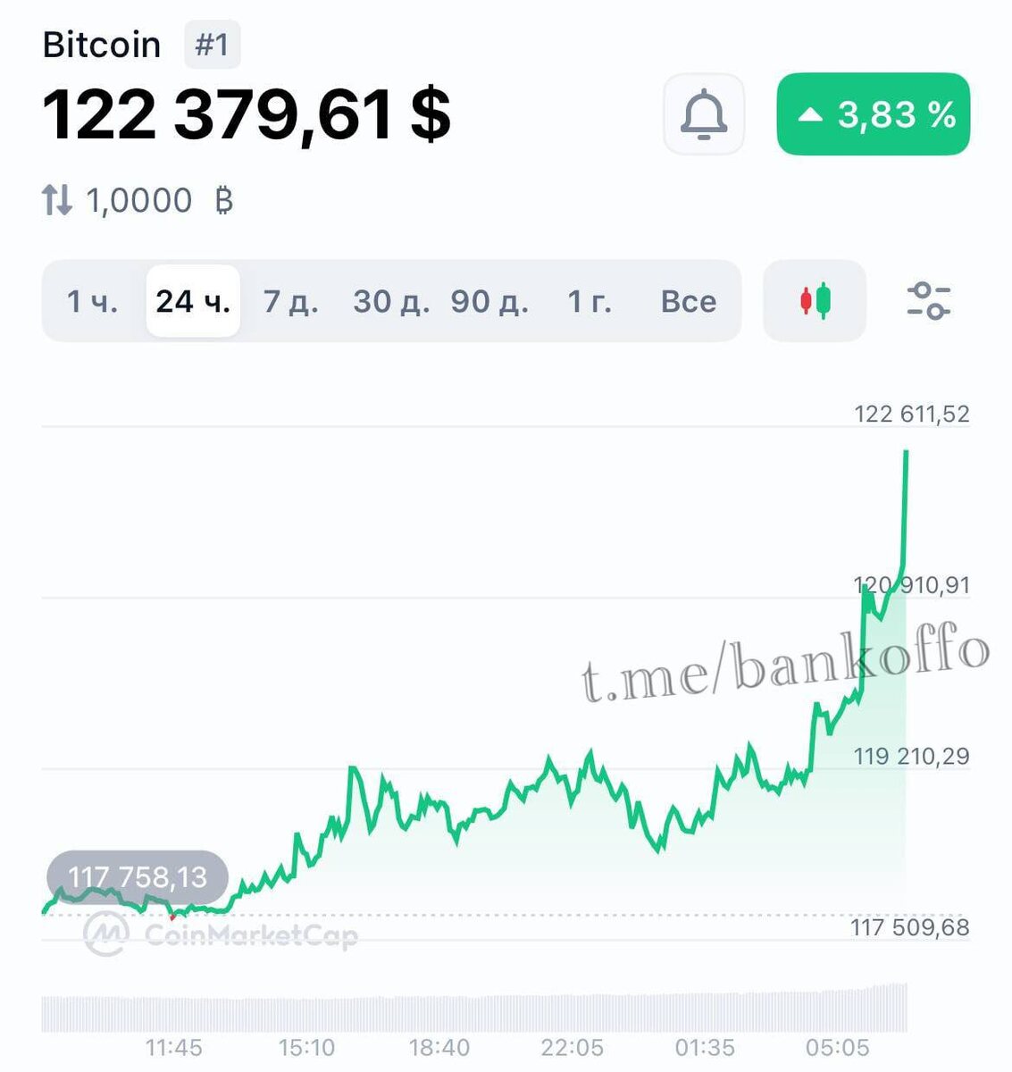Биткоин пробил новый исторический максимум — $122 000.