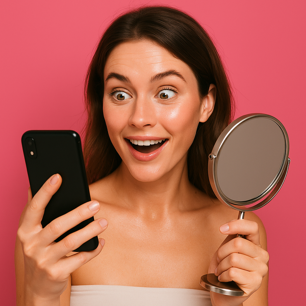 Знакомо это чувство? В зеркале вроде всё нормально, но стоит открыть фронталку — и ты как будто на 10 лет старше. Это не иллюзия. Рассказываю, почему так происходит и как вернуть себе молодость даже в камере. Вы замечали, что в зеркале кожа гладкая, а в телефоне — морщины, серость, усталость? Причин этому несколько: Телефон захватывает плоский свет сверху — и это подчёркивает: Когда ты смотришь в зеркало — свет часто мягкий и отражённый. В телефоне — жёсткий, направленный. Мы держим телефон ниже уровня глаз — и автоматически: Телефоны часто усиливают текстуру, чтобы улучшить детализацию. Но это: Если кожа выглядит серой, дряблой, уставшей даже на фото — значит, это не только ракурс. Это сигнал: Перед съёмкой или селфи: Так кожа сразу становится: Самое простое: Лучший свет — рассеянный дневной.
