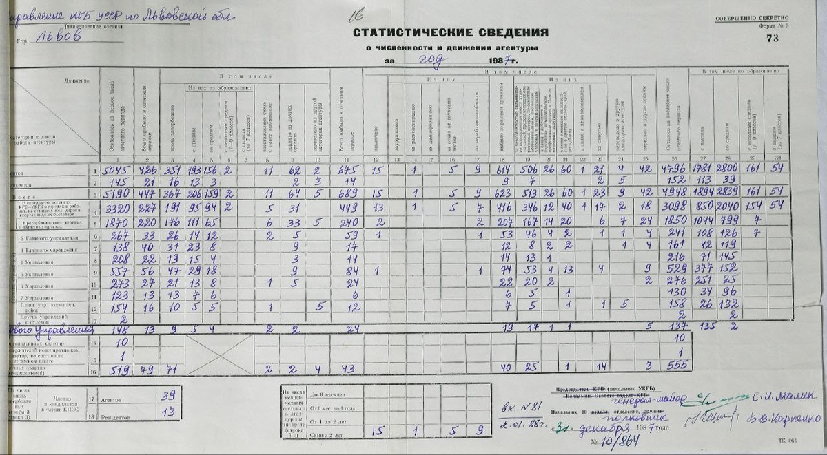 Сколько агентов имело УКГБ по Львовской области в 1987 году