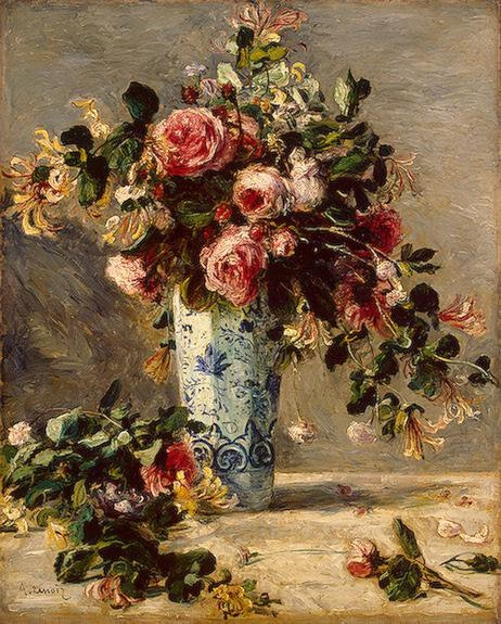 «Розы и жимолость в дельфтской вазе», 1878 г. Художник Пьер-Огюст Ренуар