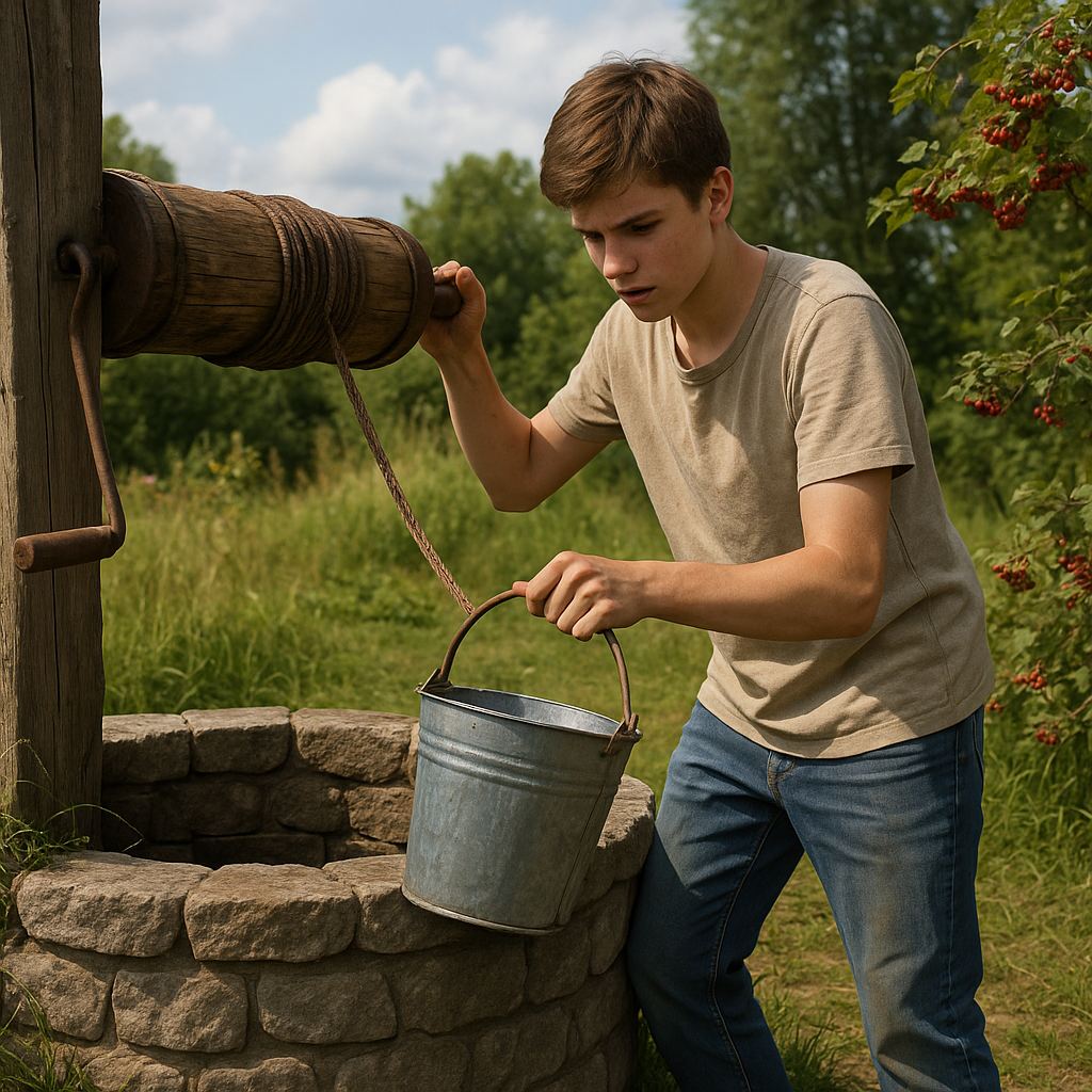 Уехали мы как-то на лето в деревню к бабушке. Внук её, Степанка, паренёк лет пятнадцати, всё искал, чем бы заняться. То за курицами гонялся, то за трактором бегал, а тут вдруг — решил выкопать колодец. Говорит: