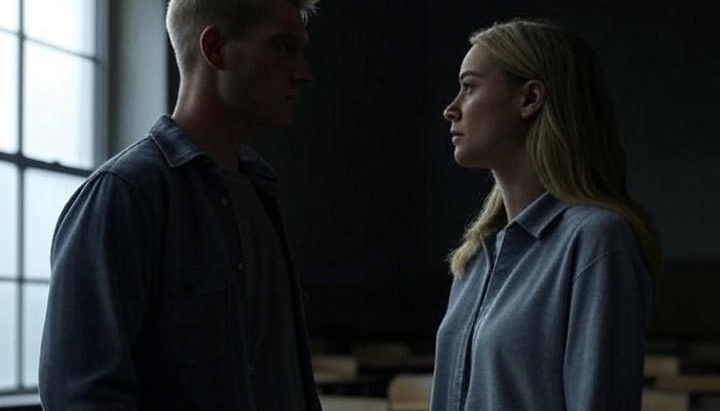 По ощущениям дух военного времени и воздух накалён от всего вокруг происходящего. Я в классе пустой заброшенной школы - совсем недавно здесь ещё велись занятия и стены были полны детскими возгласами. Теперь же здесь звенящая пустота. Ко мне подходит мужчина. Ничем не примечательный. Высокий, светловолосый, но внешность обычная - не за что зацепиться чтобы описать. Говорит смотреть ему в глаза. Я поднимаю на него свой взор и смотрю не отрываясь. Чувствую как дрогнула от презрения верхняя губа, но взгляд не увожу и хочу его испепелить ненавистью, которая внутри меня уже клокочет. Это продолжается долго. Очень долго, но я не собираюсь сдаваться. В конце концов он начинает суетиться, я подхожу к нему вплотную, вцепляюсь пальцами в шиворот его рубашки и целую его в губы. С презрением. Вложив всю свою ненависть в это слияние губ. Его взгляд становится соловелым и восхищенным. Он достает из брюк карандаш и выкрикивает: «Норвегия». На одной из парт лежал ватман, он берет бумагу и начинает д