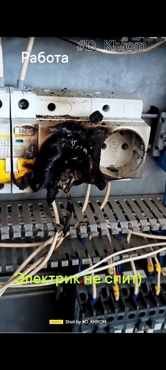Розетка в панельном доме: Розетка, выходящая на две стороны стены, стала причиной пожара. С одной стороны в нее входил питающий кабель, с другой – отвод на розетку с обратной стороны, куда был включен чайник. Из-за слабого контакта со стороны питающего кабеля розетка загорелась, огонь перекинулся на обои и чуть не дошёл до потолка. Этот случай показал, насколько важно обслуживать соединения где вроде нет нагрузки и учитывать все подключенные приборы.