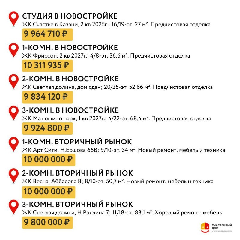 Что можно купить в Казани за 10 млн.₽ Интересная ситуация сложилась на рынке недвижимости столицы Татарстана: Вы можете купить трёшку во вчерашней новостройке с полной меблировкой или квадратные метры по ДДУ с ключами в 2027 года Тоже самое касается и однокомнатных квартир)