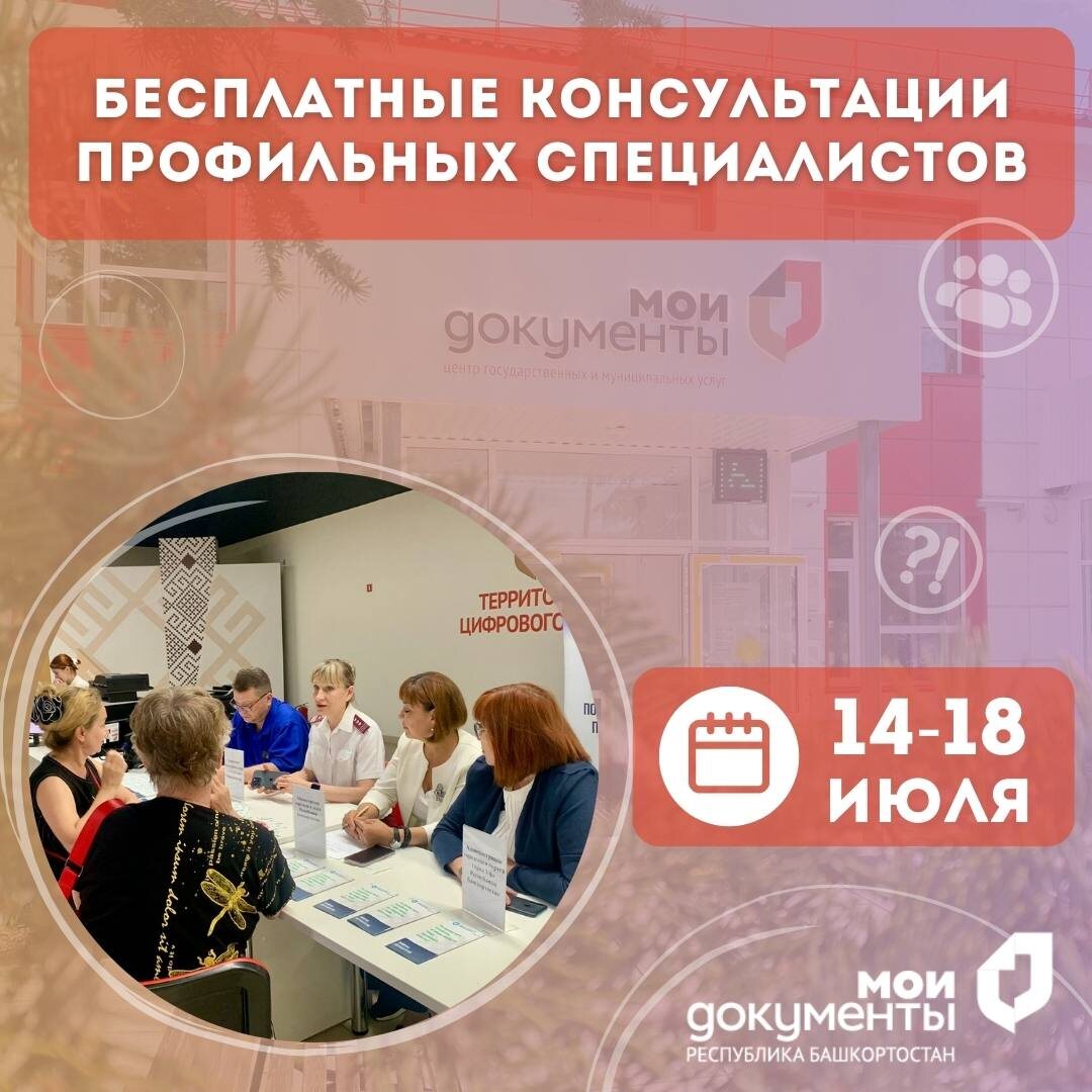 Бесплатные консультации профильных специалистов в офисах МФЦ Башкортостана с 14 по 18 июля
