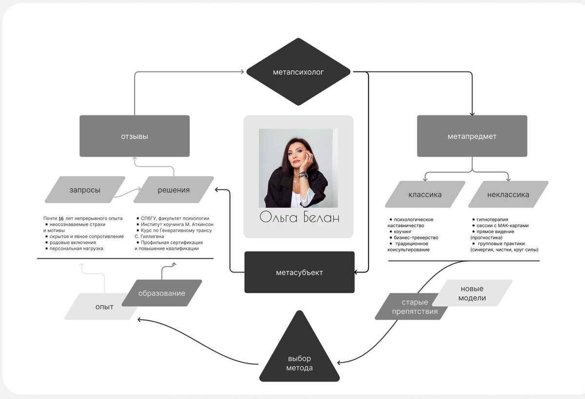 Всех приветствую! Если вы недавно на моём канале, пришло время познакомиться. Я Ольга Белан, метапсихолог: использую в работе метапредметный и метасубъектный подходы. Что это значит? 🔴 Метапредметный подход означает, что для наибольшей результативности я сочетаю классические и неклассические инструменты, подбирая их под запрос и специфику подопечного. Вместе мы находим истоки препятствий и культивируем новые жизненные модели. Сценарий такой работы иногда возникает в моменте. Так можно двигаться через гипнотерапию, сессии с МАК-картами, посредством прямого видения (прогностики) или в групповых практиках. Я провожу круги силы, практики чистки, целеполагания и обмена опытом. Среди классических методов работы — психологическое наставничество, коучинг, бизнес-тренерство и традиционное консультирование. Грамотно комбинировать методы мне позволяет: 1️⃣Качественное образование - СПбГУ, факультет психологии - Институт коучинга Мэрилин Аткинсон - Курс по Генеративному трансу Стивена Гилли