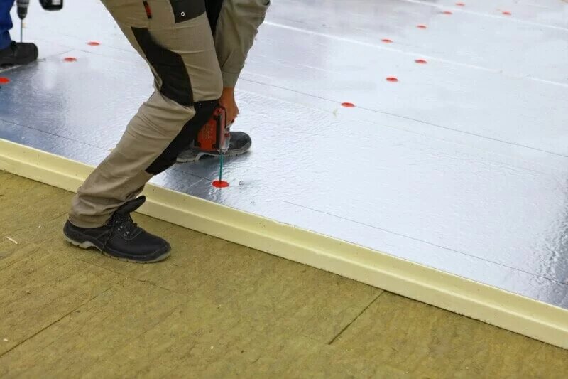 Высокая прочность на сжатие делает PIR отличным выбором для утепления полов под мокрую или сухую стяжку, в том числе в системах теплый пол. Он не просядет под весом бетона и мебели. Также эффективен для тепло- и звукоизоляции межэтажных перекрытий.
