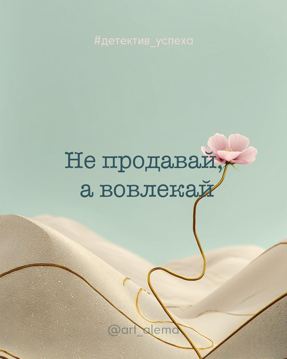 #детектив_успеха Не продавай, а вовлекай Особенно если вы работаете в одиночку, без бюджета, без отдела маркетинга. Когда за вашим делом стоит живой человек, душа и смысл — это уже сильнее любой рекламы. Сегодня выигрывают не те, у кого громкое имя, а те, кто умеет говорить по-человечески. Не «продавать», а «поддерживать». Не «купи срочно», а «давай покажу, что может быть вам полезно». Люди устали от громких призывов. Им нужно не «КУПИ СЕЙЧАС», а ощущение, что их видят, слышат и понимают. Им нужно чувствовать, что они не просто покупатели, а часть чего-то настоящего. И это как раз то, что может позволить себе малый бизнес, не работать на поток, а выстраивать отношения со своими клиентами. А значит, вовлечение — ваш самый сильный инструмент. Что такое вовлечение, если говорить просто? — Истории, за которыми стоит человек — Вопросы, после которых хочется ответить — Посты, в которых узнаёшь себя — Закулисье, за которое хочется наблюдать — Живые эмоции, а не идеальные картинки Когда ч