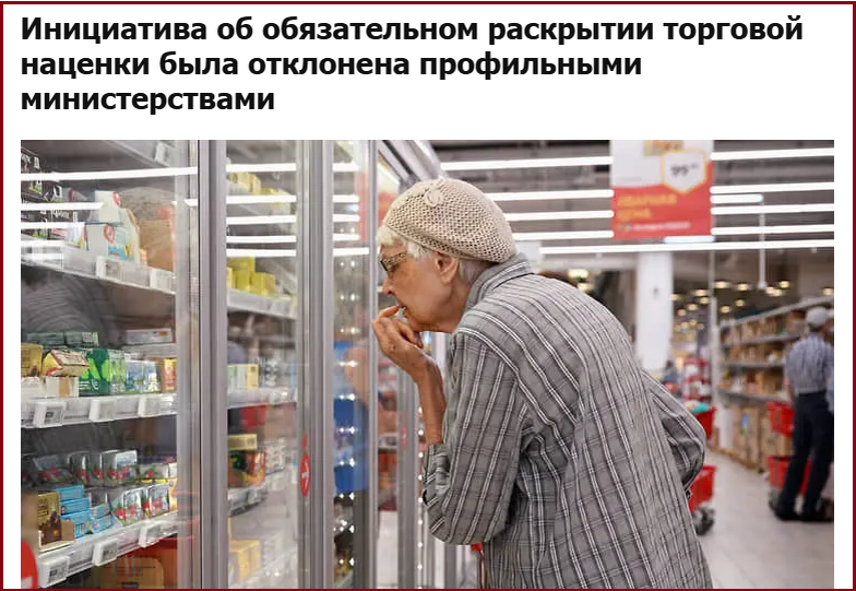 Тайна наценки или Ведомства РФ против снижения «спекулятивного» роста цен на продукты