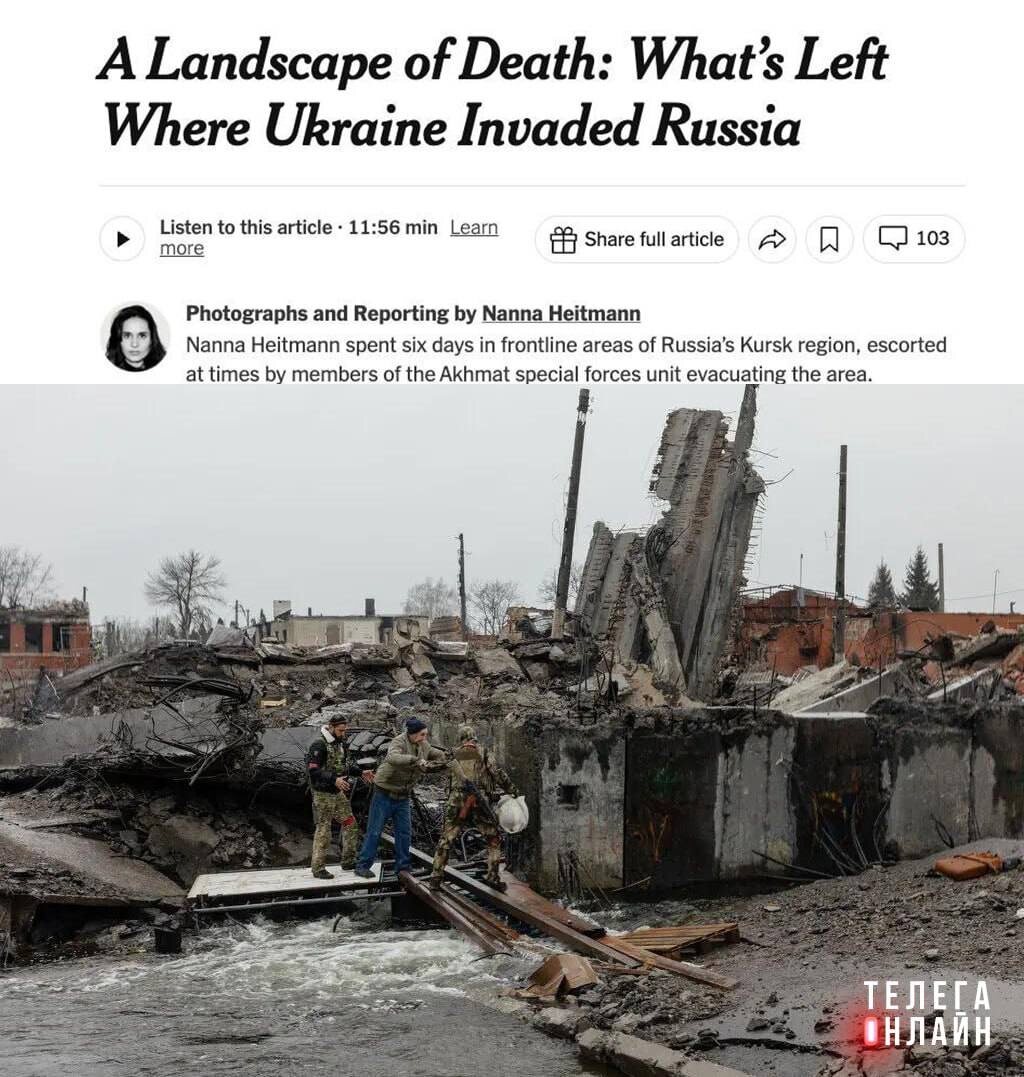 Коротко о свободе слова в стране-кандидате в ЕС МИД Украины обиделся на The New York Times, чья журналистка опубликовала большой репортаж из-под Суджи, побывав там с российским подразделением «Ахмат»: Это не сбалансированность и не «другая точка зрения». Это просто позволяет российской пропаганде вводить аудиторию в заблуждение. Так и записываем: все, что не совпадает с фантазиями Киева о перемогах, объявляется зрадой «российской пропагандой». 🚲 Подпишись на Телега Online