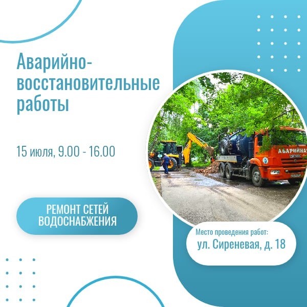 🚧 Ремонт сетей холодного водоснабжения по улице Сиреневая 15 июля
