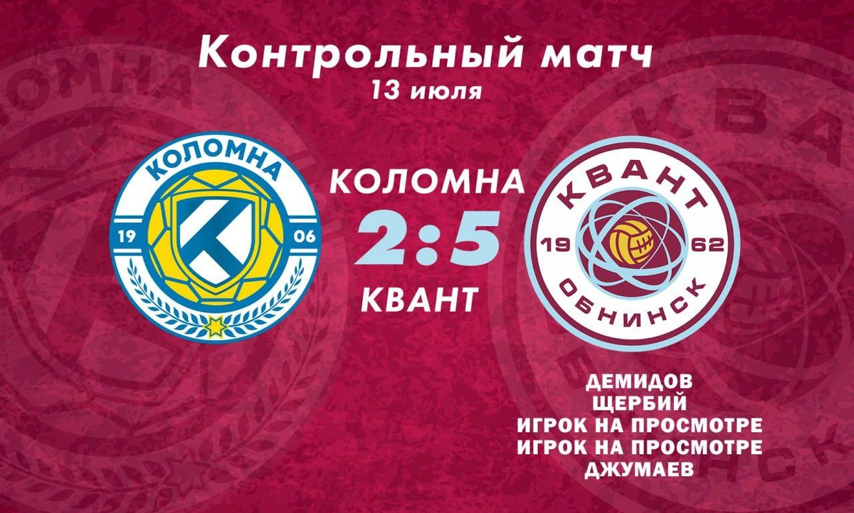 Есть долгожданная победа!!! 👏👏👏 Пусть и это всего-навсего контрольная встреча, но тут важна именно психологическая составляющая. Коломна в этом сезоне играет в другой параллельной группе, мы соскучились 😉🤝 В матче приняли участие: Побережный, Драгой, Дёмин, Джумаев, Щербий, Чаплыгин, Бастрыкин, Зенкевич, Демидов, Романов, Садовский, Иванушкин, и 6 просмотровых ребят. Один из них стал автором дубля 💪 Да-да всё тот же хорошо знакомый😉 Также голами отметились Анатолий Демидов и двое вчерашних дублёров Никита Щербий и Азамат Джумаев 👏
