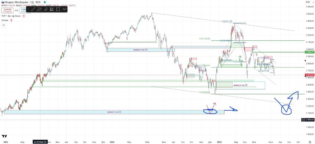 А это график индекса ММВБ. Когда-то давным-давно я обозначил зону. И только придя в неё — если, конечно, придём — я подумаю о покупке акций российского рынка. До этого момента становиться инвестором я не планирую. 📉 Ежедневный заработок с помощью фьючерсов и опционов с ограниченным риском для меня — гораздо более приемлемый путь, чем покупка бумаг с последующим переживанием и перелистыванием новостной ленты в поисках очередных негативных новостей.