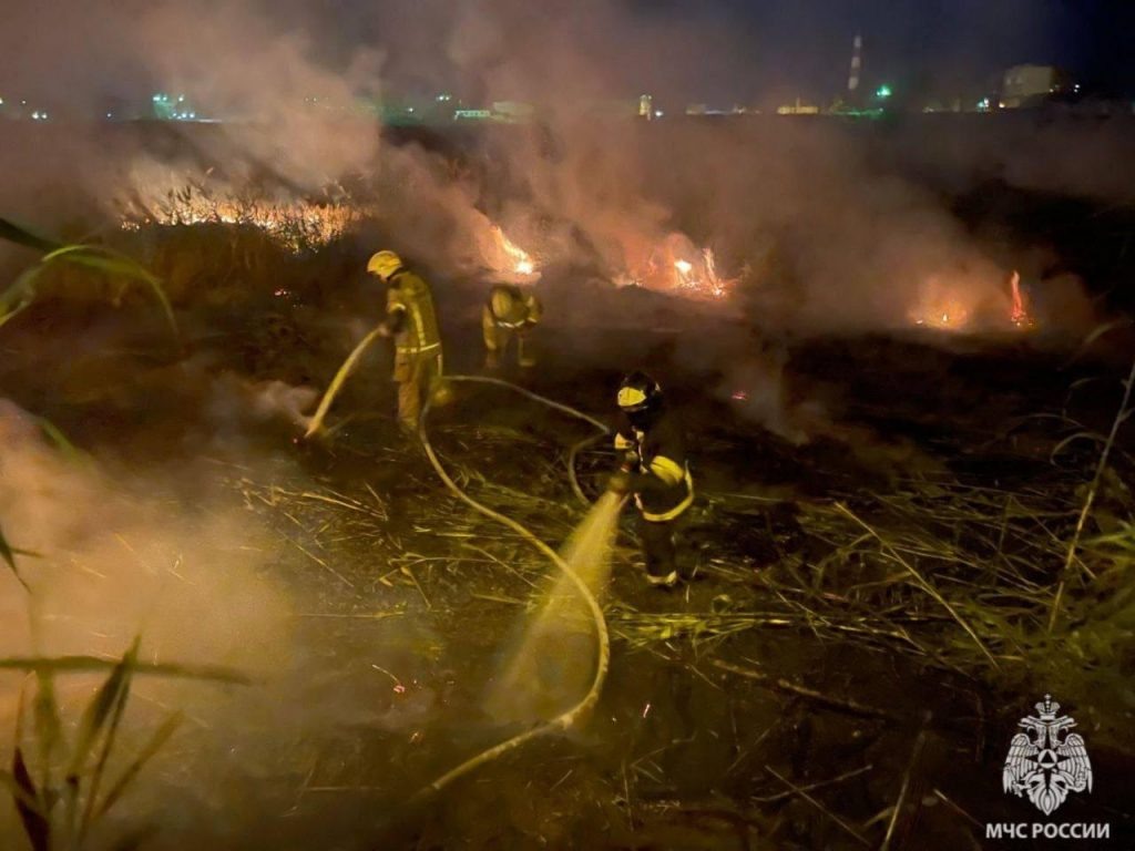 В Волгограде тушили крупный пожар в камышах на фоне жары и болотистой местности