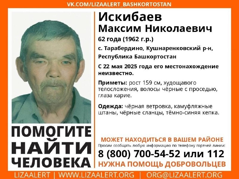Гвардия! Срочно! Знаем, что Башкирия нас читает тоже! К нам обратились: «Ольга добрый день, извините за беспокойство. Нужна ваша помощь, знаю что у вас в Башкирии есть отделение Женской Гвардии. Не могли бы вы распространить ориентировку на Искибаева Максима Николаевича.»