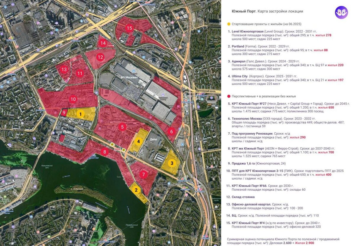 Друзья, делюсь с вами сводной картой текущей и перспективной застройки локации Южный Порт. На мой взгляд, это один из самых недооценённых участков Москвы — пока. Но потенциал у него колоссальный.