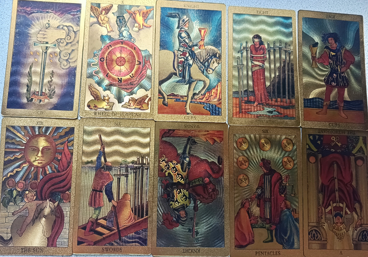 Вопрос из потока звучал так: "Кто же меня спасет из этого брака?". Вас, то есть. И было ощущение, что ждете принца на белом коне. Его нам и показали - Кубковый Рыцарь рядом с Колесом фортуны. Любви нет. Нет эмоций от мужа. Нет поддержки, понимания. Холодность. Вроде работает, денег дает. Но это какой-то фасад! Чувствуете себя как в клетке! И хотелось бы давно уже уйти, но есть детки. Или ребенок. Не хочется оставаться РСП. Отсюда и ожидание - кто спасет? Когда принц на белом коне появится? Принц не появится. Придётся спасать себя самой. Главная мысль - будьте расчётливы, не поддавайтесь эмоциям, думайте о процветании и деньгах - Мечевая и Пентаклевая Королева - это Вы. Рутина задолбала Вас, хочется эмоций - вот основная причина хандры. Но лучше всего не гневить Высшие Силы, иначе есть риск лишиться финансового потока, в том объеме который у Вас сейчас есть. Вам предлагается стать самой холодной и расчётливой и найти счастье сперва в материальных ценностях, а не в любви мужчи