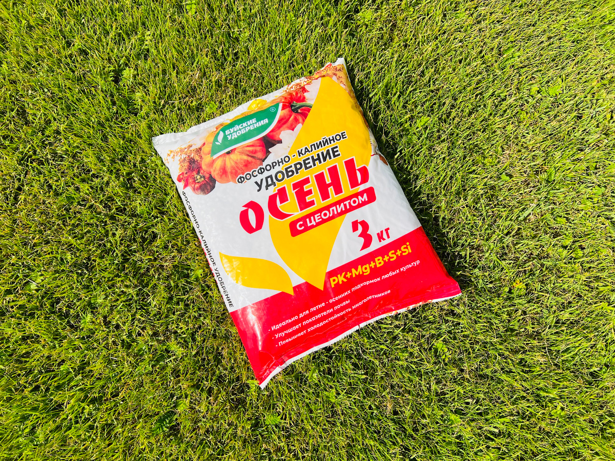 В ассортименте удобрений Буйского химического завода есть одно с уникальным составом и добавкой в виде цеолита. Это удобрение "Осень". Уже с середины июля многие садоводы начинают вносить это удобрение практически под все культуры. В нём нет азота, много калия, есть кальций.