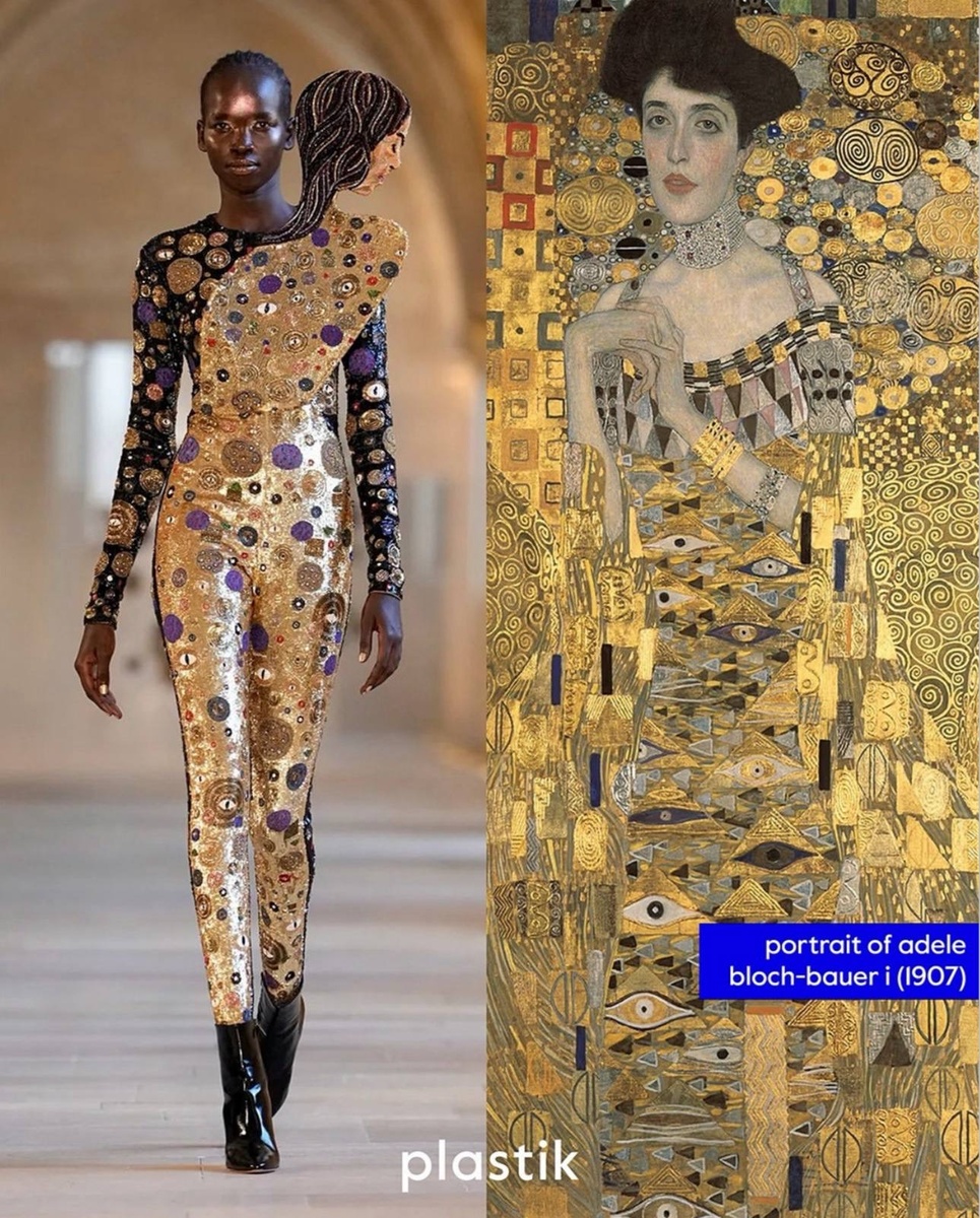 Кутюрная неделя моды завершилась, а я продолжаю изучать творения дизайнеров. Среди множества представленных коллекций, пять из них особенно привлекли внимание. 1. Первая - это коллекция FW 2025 индийского дизайнера Rahul Mishra, который опирался на творчество австрийского художника Густава Климта. Мишра с помощью ручной вышивки создал коллекцию, в которой каждое платье – это миниатюрная картина, воспроизводящая характерные мотивы работ Климта. Платья выглядят как фрагменты живых полотен, ожившие на подиуме, а модели, дефилирующие в этих нарядах, превращаются в живые инсталляции. Вглядитесь, каждый стежок, каждая бусина – это титанический труд, очень талантливо и действительно произведения искусства. 2. Вторая коллекция, привлекшая внимание - это дебютная кутюрная коллекция Гленна Мартенса для Maison Margiela. Мартенс, взяв на себя ответственность за продолжение легендарного наследия Мартена Маржела, продемонстрировал свое глубокое понимание духа бренда, привнеся в него собственное тв