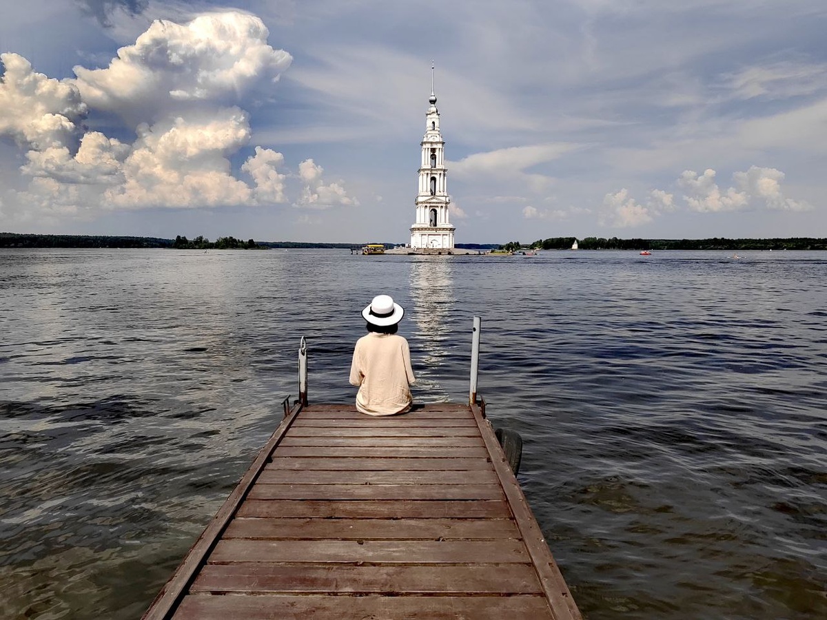 До Калязина — всего 170 километров от Москвы, а ощущение, будто попал в другой мир. Маленький город с великой, почти утонувшей историей. Я давно видела фото колокольни посреди воды — белая, строгая, на фоне синей Волги. Символ Калязина. Но когда видишь ее вживую — картинка из Интернета превращается в настоящее чувство. Смешанное: восторг и легкую тоску. Начала я свою прогулку с Вознесенской церкви. Она прячется в начале улицы Карла Маркса, за невысоким забором. Храму почти 250 лет, и это действующая церковь, где покоятся мощи преподобного Макария Калязинского. В советское время здесь был... стадион. Представляете? Прямо вокруг храма бегали футболисты, в самом здании хранили хозтовары. Сегодня церковь восстановлена, и каждое 8 июня сюда стекаются паломники — в день перенесения мощей Макария из Твери. Недалеко — памятник князю Скопину-Шуйскому. Он победил польско-литовское войско под Калязином ровно 400 лет назад. Местные школьники, оказывается, участвуют в исторических экспедициях по ма