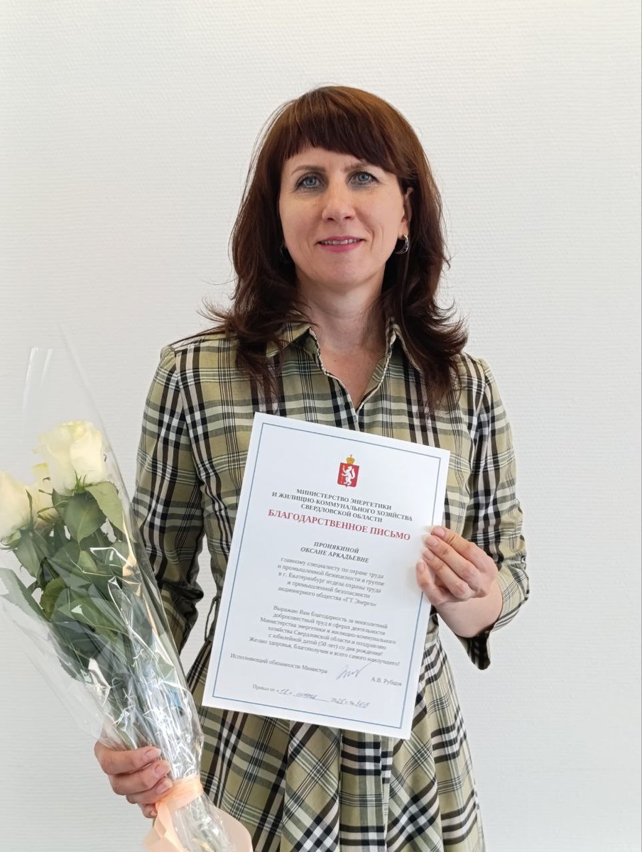Наша коллега Оксана Пронякина в канун своего юбилея получила Благодарственное письмо от и.о. министра энергетики и ЖКХ Свердловской области А.В. Рубцова.