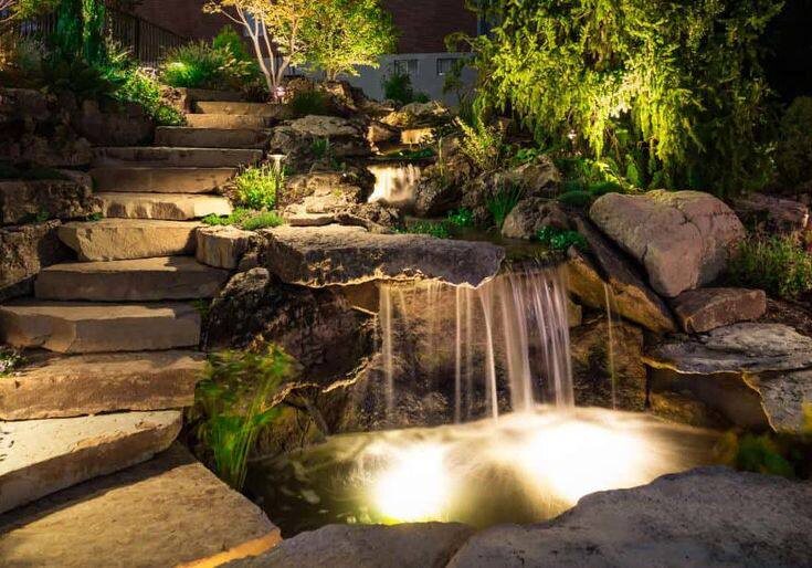 4. Подсветка. Подводная или наземная подсветка преобразит водоем или фонтан в вечернее время, продлит магию прохлады и создаст волшебную атмосферу.