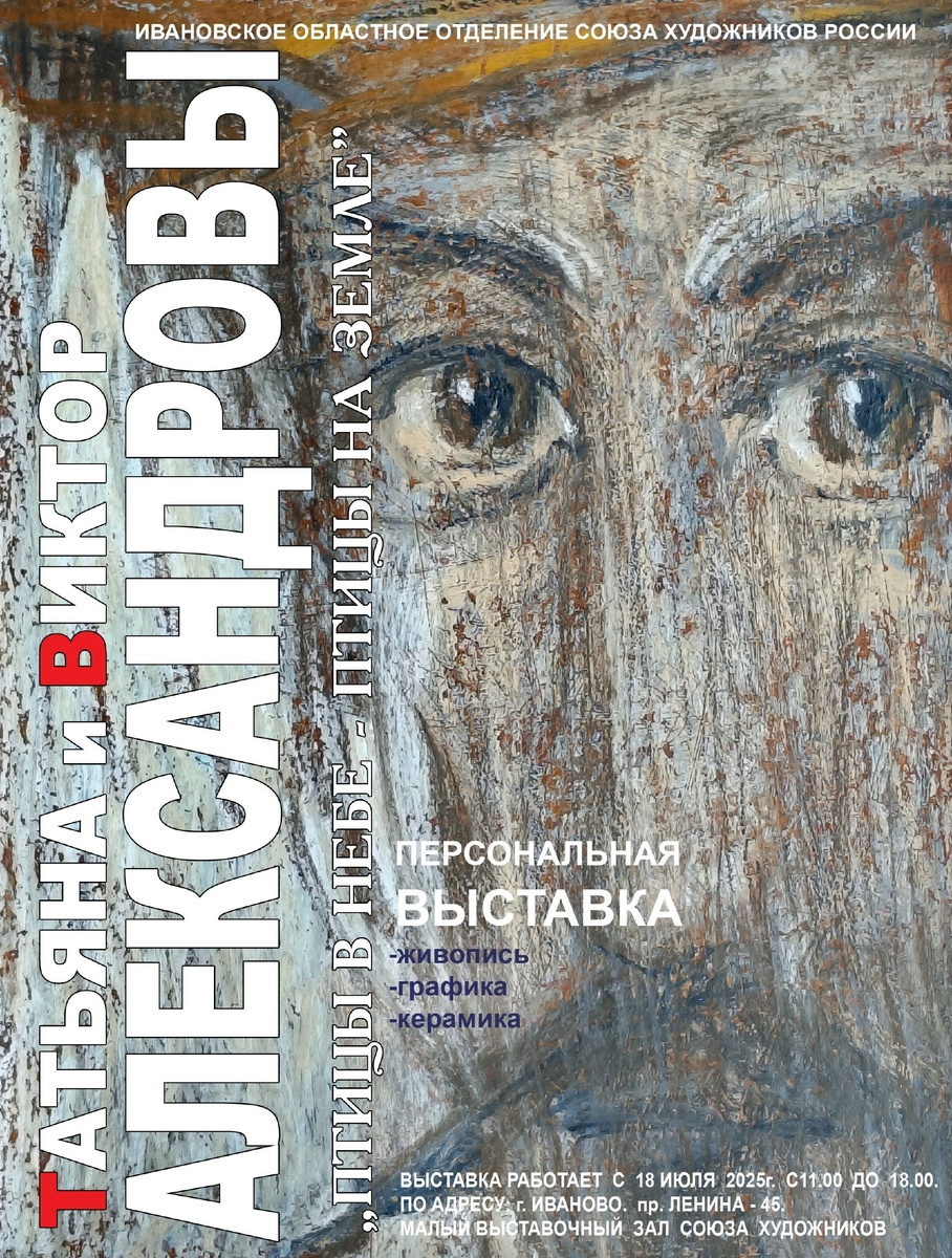 В Иванове откроется выставка кинешемских художников 18 июля в ивановском Доме художников откроется выставка «Птицы в Небе птицы на Земле» (6+). Это очередной этап проекта «Новые имена», в котором представлены работы кинешемских художников - супругов Виктора и Татьяны Александровых. Выставка семейного тандема — первая у авторов и демонстрирует направления поисков живописцев. Зрители увидят светлые, тёплые произведения в основном в смешанной технике. В экспозиции представлена и керамика, которая логично и естественно вплелась в общий замысел. Оба мастера — уроженцы Ивановской области (Виктор — из Кинешмы, Татьяна — из Иванова), выпускники Ивановского художественного училища, работают преподавателями изобразительного искусства. Выставка работает ежедневно в малом выставочном зале Дома художника. Фото: Ивановское ОО СХР