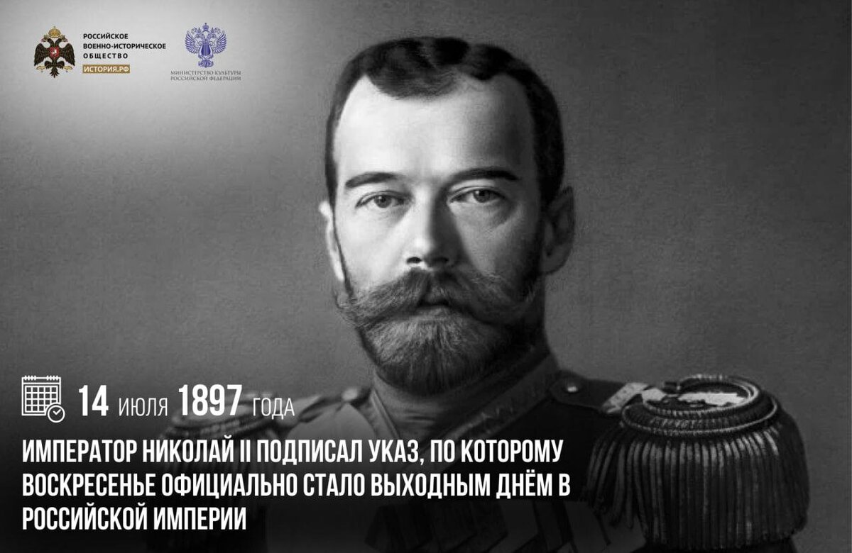 14 июля 1897 года император Николай II подписал указ, по которому воскресенье официально стало выходным днем в Российской империи