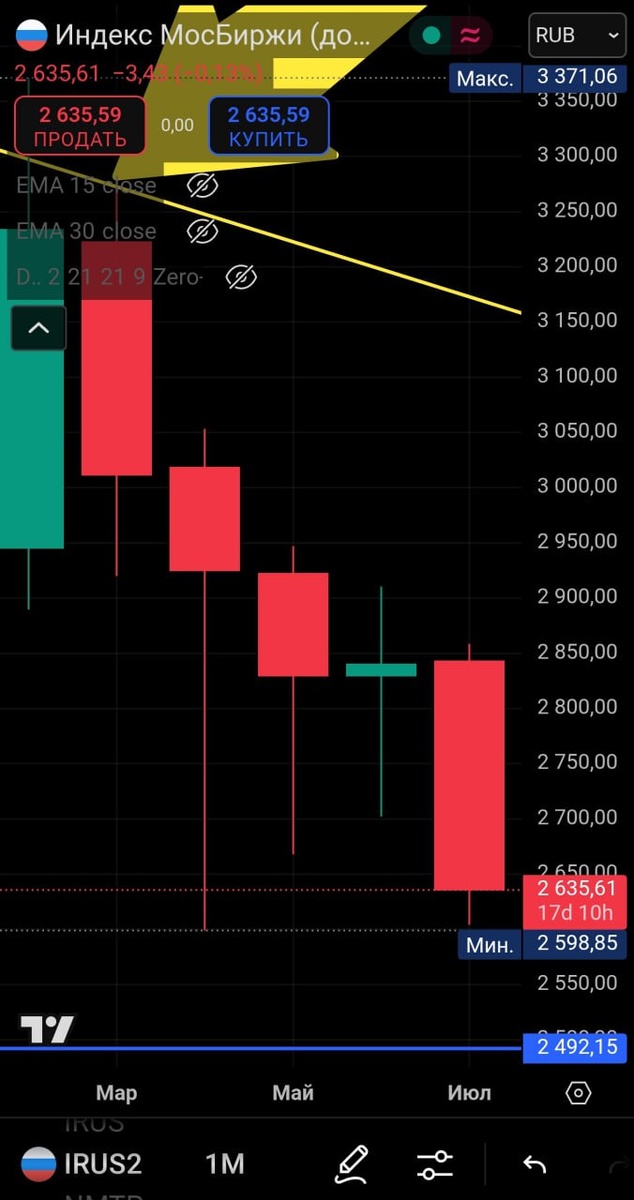 😏Депозиты под 20%: Почему крупные деньги сбежали с рынка и не вернутся, пока ЦБ не ударит по ставке? Говорите Трамп запугал наш рынок? Я торгую с 2015 года, капитал 35 млн ₽ И если я открываю индекс ММВБ на месячном таймфрейме, и вижу весной 2025 начался даунтренд, на тяжелом таймфрейме. То я понимаю что крупных денег в акциях нет, Они на депозитах под 20% годовых, А если денег нет, то подвозят новости, Под весом которых легко трамбуют рынок вниз. Но может ЦБ 25 июля, снизит ставку на 2 или даже на 3% И тогда на депозитах под 15% точно никто сидеть не будет? Я вам скажу ЦБ это сделает, если инфляция существенно упадёт, А падает инфляция, если доллар к рублю падает, А если инфляция упадёт, какие доходы будут у компаний и какие дивиденды? Правильно 5-6% И кто променяет депозит под 15% на дивиденды в 5-6% Приведу пример Европы или США, Там люди с удовольствием сидят в депозите под 4% Знаю о чём вы сейчас подумали, Статистика рисованная, инфляция выше. Гиперинфляции не будет! Банки да