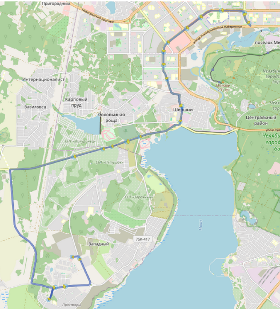 Согласно документам, на маршруте протяженностью 36,7 км будут курсировать 18 транспортных средств (два из них в резерве). Машины поедут от микрорайона «Привилегия» (улица Спортивная) до IT-лицей «Привилегия», микрорайона «Белый Хутор», улицы Брусничной, садов «Вишневый», «Мичуринец», «Петушок», затем повернут на Западный-2, развилку (по требованию), поселок Шершни, улицу Гостевую, улицу Академика Сахарова, Академика Королёва, Академика Макеева, Салавата Юлаева, 25-й микрорайон, 24-й микрорайон и проследуют до остановок Челябинский государственный университет, улица Братьев Кашириных и Молодогвардейцев. Планируется, что в рейс автобусы начнут выходить с 1 декабря 2025 г., а контракт с перевозчиком рассчитан до 31.12.2027 г.