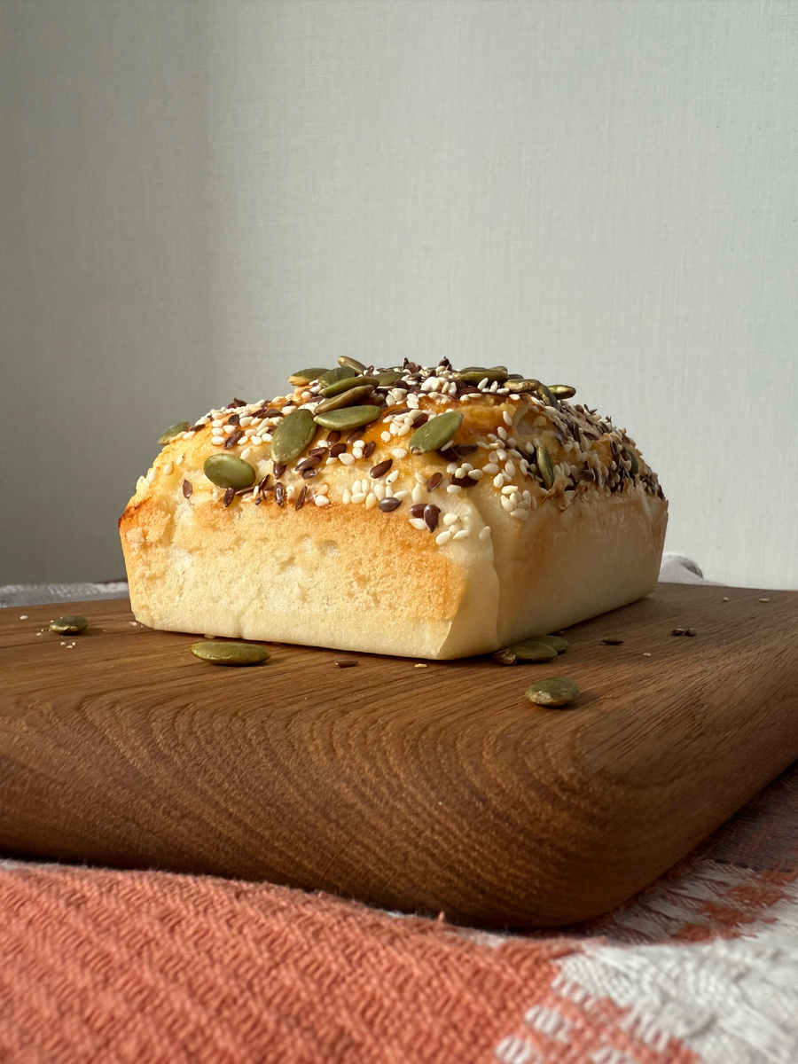 Простой, вкусный и главное быстрый рецепт хлеба, для тех кто соблюдает кето диету или по различным причинам не кушает глютенсодержащие продукты. Смешать муку, соль, сахар и дрожжи. Кефир подогреть, и добавить к сухим ингредиентами. Туда же добавить белок от яйца. Добавить масло. Все хорошо перемешать. Тесто выложить в форму, и смазать желтком и посыпать семечками. Оставить под полотенцем на 15 минут. Выпекать в разогретой до 180 градусов духовке 30-40 минут, до румяности. Хлебушек получается пышный, мягкий, ароматный, и с съедается с большим удовольствием!