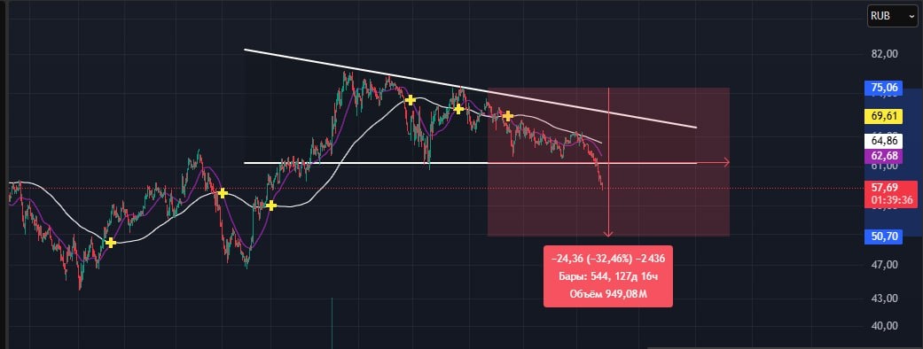 Уровень пробили - фигуру подтвердили, а значит движение вниз будет продолжено.