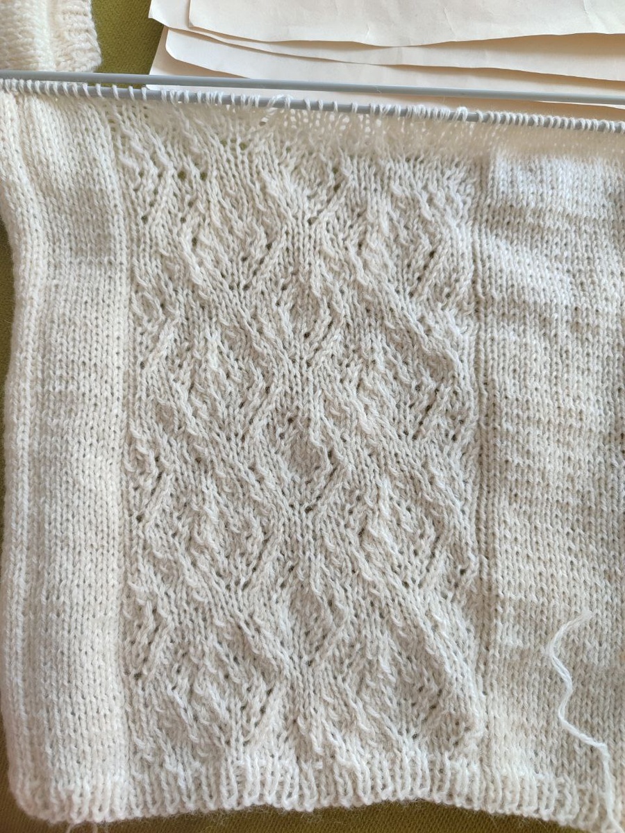 ~Милые женщины, здравствуйте! 🎶✨ Хочу показать вам своё вязание. Спинку я закончила, вывязываю узор на полочке. И это было то ещё приключение. В описании неверно указано количество петель для узора. Пока я это поняла, несколько раз распускала и не могла понять ошибку. 🧶 ~Но узор на картинке не соответствует реальному. Получаются ромбики, но не такие😁. Сначала тоже думала моя ошибка, но нет. Такая схема. Продолжаю вязание✨ #винтажныйстиль #ретро #вязание