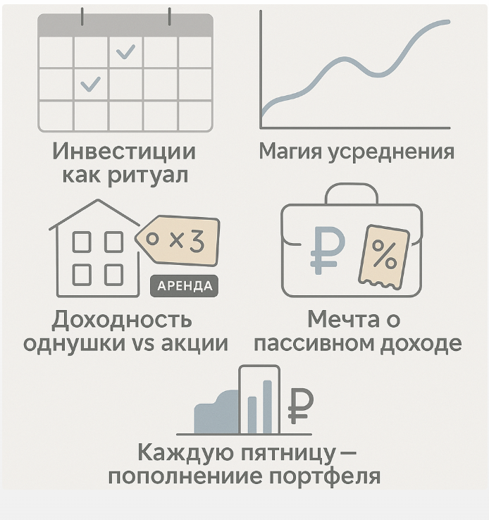 - Я как будто уже и не инвестирую, а надеюсь, что некая "магия усреднения" всё исправит или я, наконец, обгоню доходность той самой однушки, которую купил мой друг 10 лет назад, а ее цена уже выросла в три раза, не считая дохода с аренды.