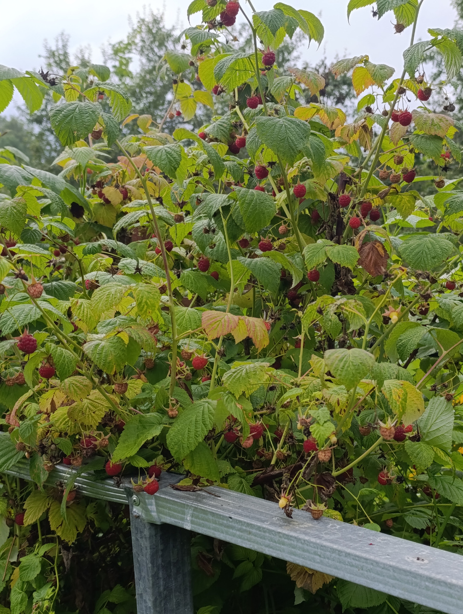Доброго лета всем! Малины в этом году урожай! Никогда у себя столько не видела, то неурожай, то засуха, то болезни. А в этом году звёзды сошлись, за все 12 лет отплодоносила. Посажено у меня не много, метра три-четыре вдоль забора. Огорожена заборчиком. Ведёт себя прилично, если выползает на газон - скашиваю. У соседей за забором тоже в этом месте растёт малина, наши кусты ходят к друг другу в гости, мы не против😅. Осенью вырезаю отплодо́носившие ветки, а молодые подрезаю на треть. Под кусты кладу перегной, скошенную траву и немного перепревшей куриной подстилки. Никогда ничем не обрабатывала и удобрениями не балую. Сортов не знаю, взята в добрые руки. Знаю только, что жёлтая и красная. Есть ещё пару кустов ремонтантной, но она будет радовать позже и до самых заморозков. Собираю через день-два, всего уже 9 литров. Малины много не бывает, очень она у нас ценится. Варю компоты, варенье. Очень понравилось взбивать блендером с небольшим количеством сахара. Так уже заготовила жимолость