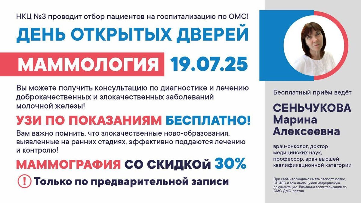 ДЕНЬ ОТКРЫТЫХ ДВЕРЕЙ МАММОЛОГА в НКЦ №3 РНЦХ имени академика Б.В. Петровского 📆 19 июля 2025 г. проведет: