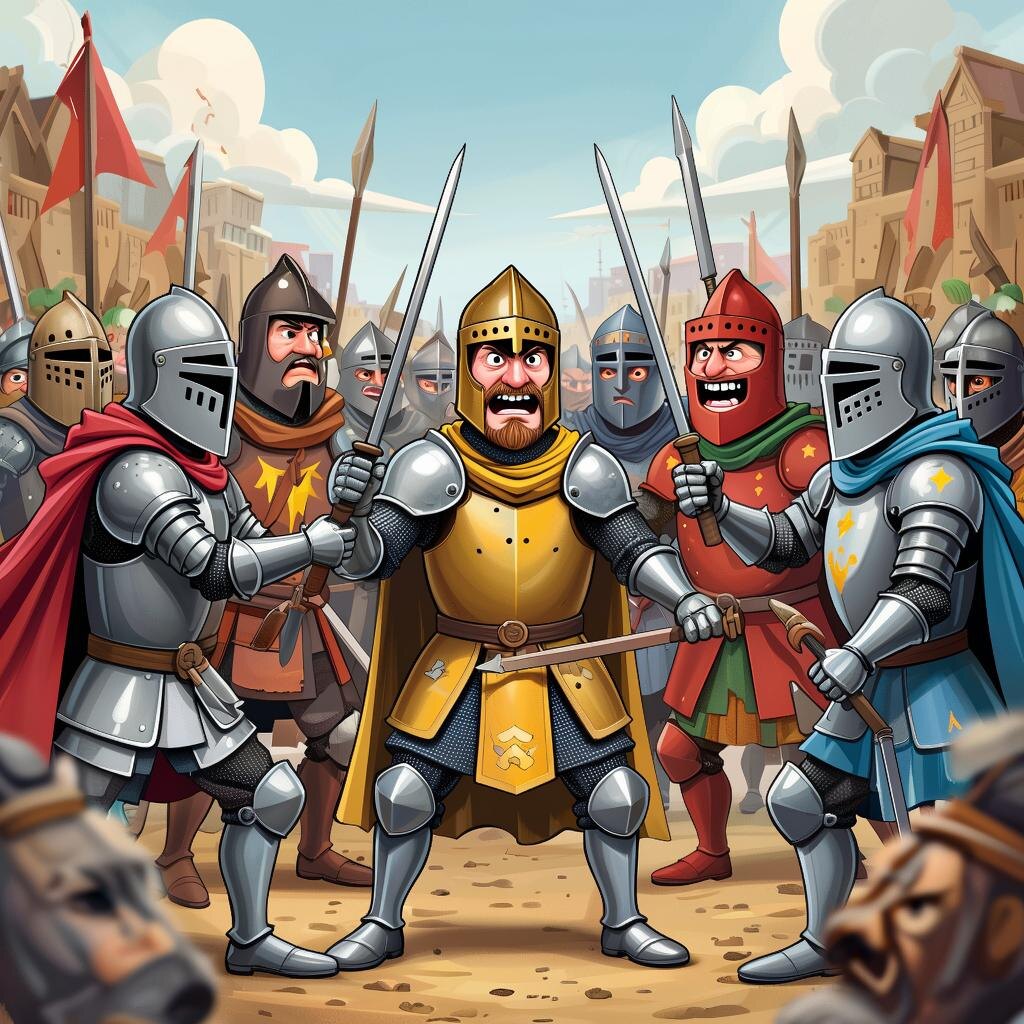 **Дорогие друзья!** Сегодня я расскажу вам такую историю, что даже средневековые рыцари покраснели бы от стыда (если бы могли, конечно — в их-то доспехах!). Представьте себе: **Средние века** — время, когда каждый уважающий себя рыцарь весил как небольшой танк, а его конь выглядел так, будто собрался на маскарад в костюме бронированного носорога. И вот эти **тяжеловесы на колёсах** (то есть на конях) мчались в атаку, думая, что им всё нипочём. Они были настолько уверены в своей неуязвимости, что, наверное, даже в туалет ходили, не снимая доспехов (хотя как они это делали — отдельная комедия). Но тут появились **английские лучники** — эти хитрые ребята, которые решили показать рыцарям, кто тут главный. И знаете что? Они использовали... обычные луки! Как говорится, не важно, чем ты вооружён, важно — как ты этим владеешь. **Английская тактика** была проста как валенок: выкопать ямку, воткнуть колышек, подождать, пока рыцарь влетит в эту ловушку со скоростью метеорита. И вот картин
