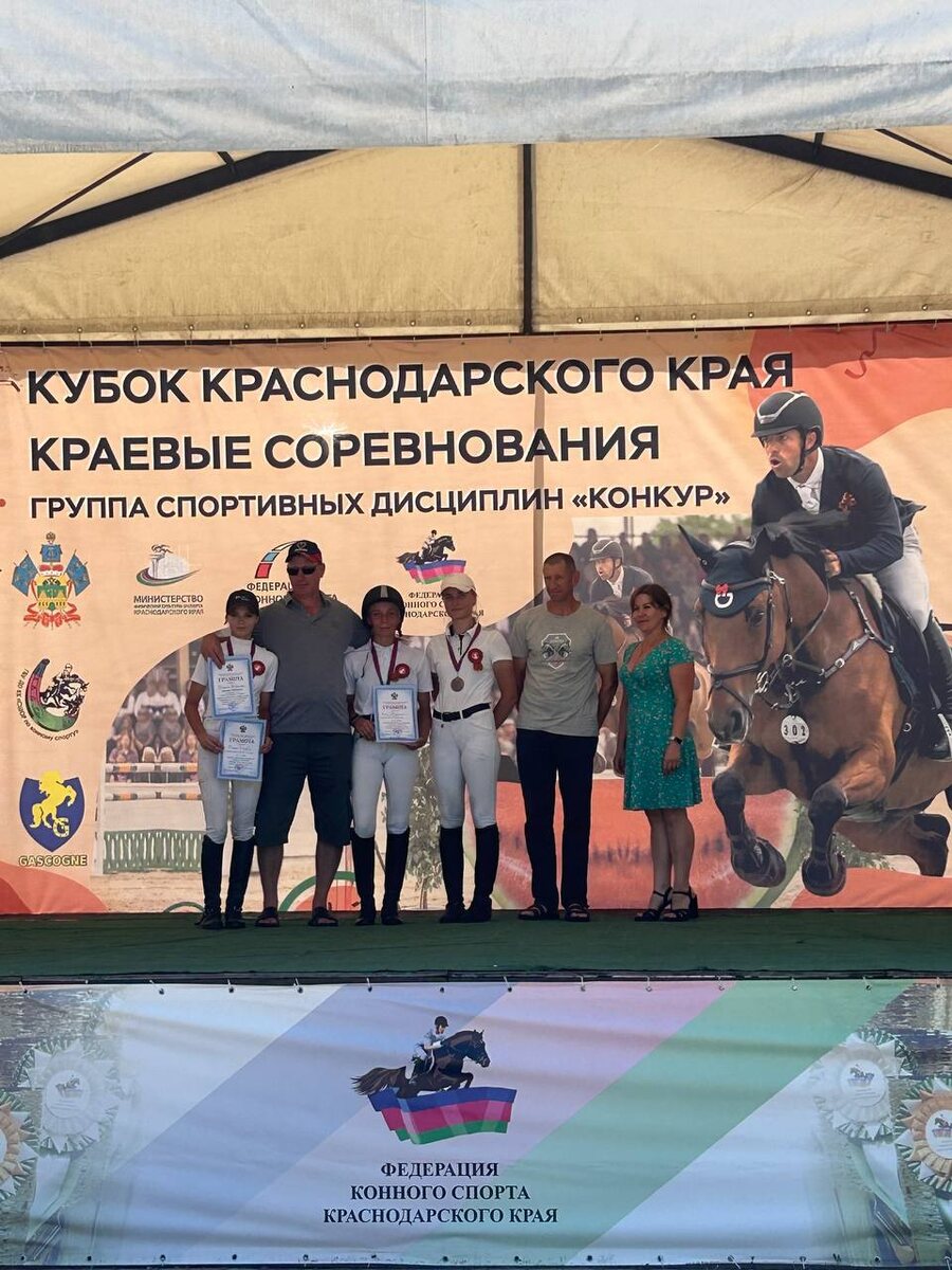 Спортсмены сборной команды Геленджика по конному спорту успешно выступили на Кубке Краснодарского края и краевых соревнованиях по конкуру. Соревнования проходили в сложных погодных условиях – жара внесла свои коррективы. В Кубке Краснодарского края Валерия Куделина и её семилетний конь Робин Гуд показали хорошие результаты. В маршруте с высотой препятствий 120 см они заняли 4 место, в конкуре с высотой 125 см – 3 место, а в конкуре 130 см – первое. По итогам трех дней соревнований Валерия и Робин Гуд заняли второе место в абсолютном первенстве. В краевых соревнованиях Мария Акимова и её конь Иридий завоевали первое место в маршруте с высотой 100 см. Дарья Олесова и ЛавСтори также заняли первое место с высотой 95 см. Ксения Белова и ЛавСтори – третье место с высотой 100 см. Ольга Куделина и Карфаген добавили в копилку команды два четвертых места на высоте 110 и 120 см. Тренер команды Евгений Иванович Куделин выразил благодарность спортсменам за их упорство и достижения.