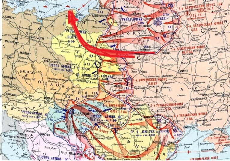 Во время продолжающегося наступления появился второй шанс воплотить эту идею в жизнь. 8 июля, учитывая неожиданно благоприятное развитие операции, Жуков предложил создать новую точку сосредоточения. План, которого так боялся немецкий генеральный штаб, был готов. Советские наступательные силы, сосредоточенные под Ковелем, должны были повернуть на север, в сторону Варшавы, а оттуда двинуться на Восточную Пруссию, совершив смелый манёвр, который отрезал бы всё северное крыло немецкого восточного фронта. Но Сталин отказался. Только 27 июля он приказал Рокоссовскому повернуть часть войск на север, в сторону Варшавы. Однако было уже слишком поздно, поскольку фельдмаршал Модель успел подтянуть свои последние танковые резервы и в последний момент остановить наступление на Варшаву. В результате произошло второе «чудо на Висле». Проиграв первое сражение из-за чрезмерного риска, Сталин проиграл второе из-за недостаточного риска. Таким образом, окончание войны было неоправданно отложено. Гитлеру и его режиму снова отсрочили казнь, и кровопролитные сражения закончились только в 1945 году. Мы с @ObssesedNuker обсуждали в другой ветке, что было бы, если бы Сталин в начале июля проявил меньше осторожности и одобрил предложение Жукова о глубоком ударе. Группа армий «Центр», несомненно, была бы окружена и полностью уничтожена, как и, вполне вероятно, группа армий «Север», учитывая неспособность немцев провести операцию «Двойной удар» в августе 1944 года, как в реальной истории. Даже в лучшем случае группа армий «Север» могла бы отступить в Восточную Пруссию, которая, скорее всего, была бы окружена советскими войсками, наступавшими на устье Вислы.