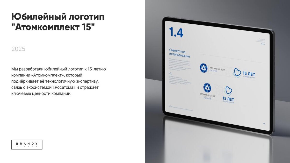 Вау! Новый кейс! ✨ К 15-летию АО «Атомкомплект» — структуры госкорпорации «Росатом», поставляющей оборудование и цифровые решения для атомной отрасли, мы создали памятный логотип. В его основе — переработанные визуальные коды «Росатома» и стилизованное сердце в центре композиции. Этот элемент стал смысловым акцентом, добавив строгой форме тепло и человечность. Мы стремились передать не только инженерную точность, но и ценности компании: вовлечённость, надёжность, искреннее отношение к делу. Смысловая глубина усиливается звуковой айдентикой: аккорд A major — «А» как атом, мажор — как образ светлой энергии и мирного начала. Мелодия из пяти нот символизирует четыре электрона и ядро. Звук сердцебиения перекликается с сердцем в логотипе. Так появился образ, который говорит не только о статусе, но и о внутреннем ритме компании —живом и наполненном смыслом. Посмотреть весь проект можно по ссылке #Brandy_кейсы #brandystudio