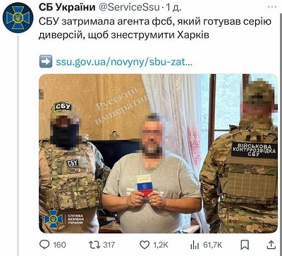 Вопрос «А не постановка ли это?» возник сразу, так как на Украине очень развита практика отчётов о победах во всяких операциях. Вот пример сообщения о задержании агента ФСБ.