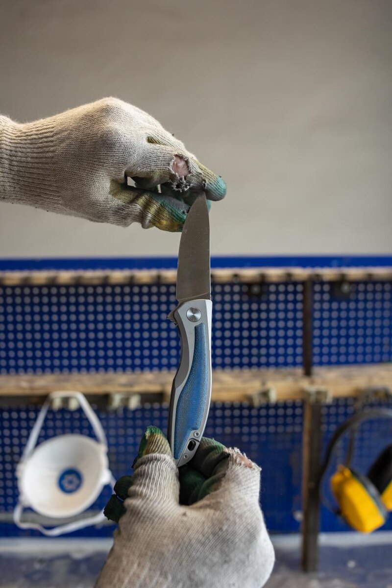 — Сталь: M390, твёрдость 59–60 HRC — режет как зверь, держит заточку долго