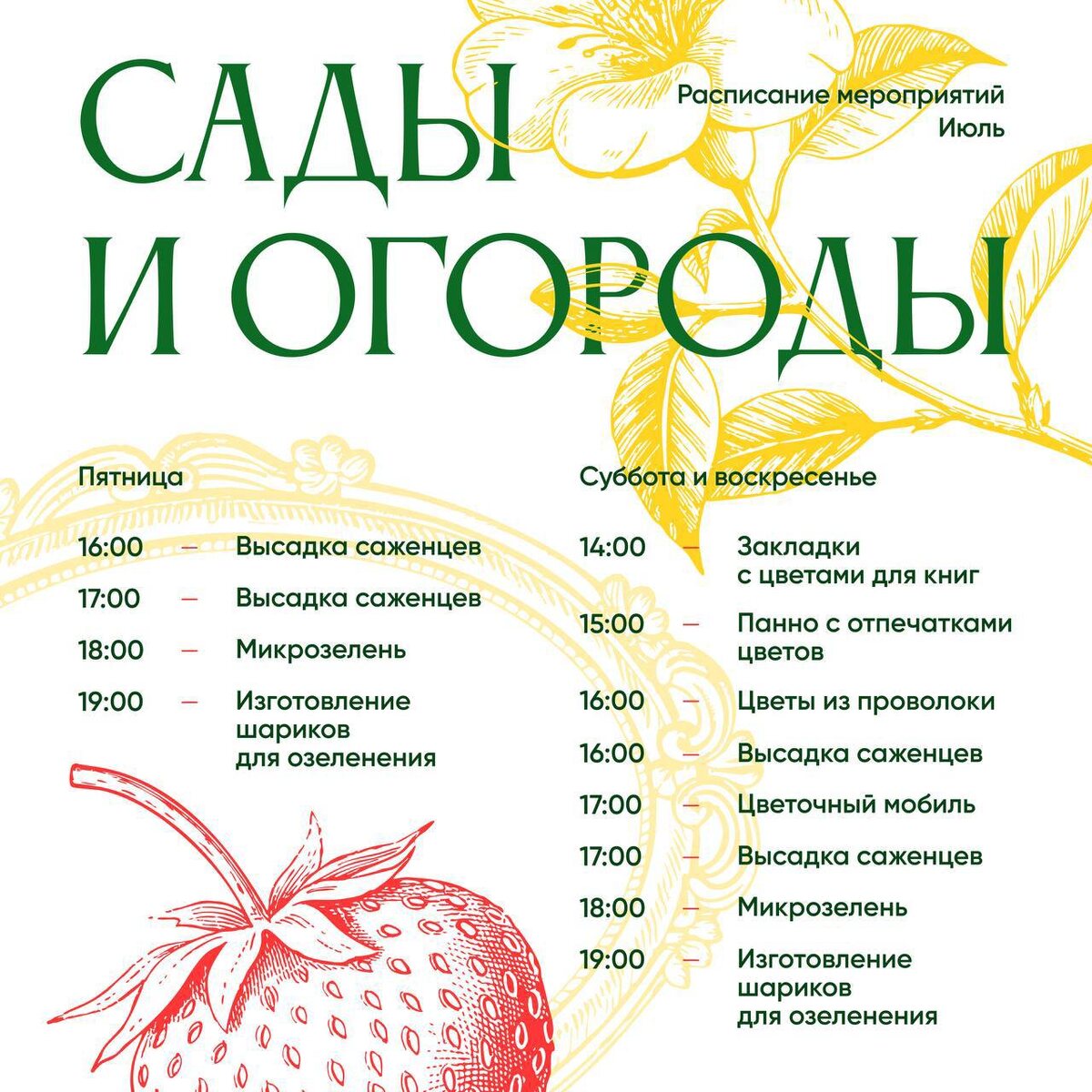 π ΠΡΡΠ΄ΠΊΠΈ, ΡΠ°ΠΆΠ΅Π½ΡΡ ΠΈ ΡΡΠΎΠΆΠ°ΠΉ β ΠΏΡΡΠΌΠΎ Π² ΠΏΠ°ΡΠΊΠ΅ Π€Π΅ΡΡΠΈΠ²Π°Π»Ρ Β«Π‘Π°Π΄Ρ ΠΈ ΠΎΠ³ΠΎΡΠΎΠ΄ΡΒ», Π² ΠΈΡΠ»Π΅ ΡΠ΅Π±Ρ ΠΆΠ΄ΡΡ: Π²ΡΡΠ°Π΄ΠΊΠ° ΡΠ°ΡΡΠ΅Π½ΠΈΠΉ ΠΈ ΠΌΠΈΠΊΡΠΎΠ·Π΅Π»Π΅Π½ΠΈ, ΡΠ²ΠΎΡΡΠ΅ΡΠΊΠΈΠ΅ ΠΌΠ°ΡΡΠ΅Ρ-ΠΊΠ»Π°ΡΡΡ Π½Π° ΡΠ΅ΠΌΡ ΡΠ°Π΄ΠΎΠ²ΠΎΠ΄ΡΡΠ²Π° ΠΈ ΡΠΊΠΎΠ»ΠΎΠ³ΠΈΠΈ.Β ΠΡΡ ΠΏΠΎ ΡΠ°ΡΠΏΠΈΡΠ°Π½ΠΈΡ Π½Π° ΠΊΠ°ΡΡΠΈΠ½ΠΊΠ΅. π