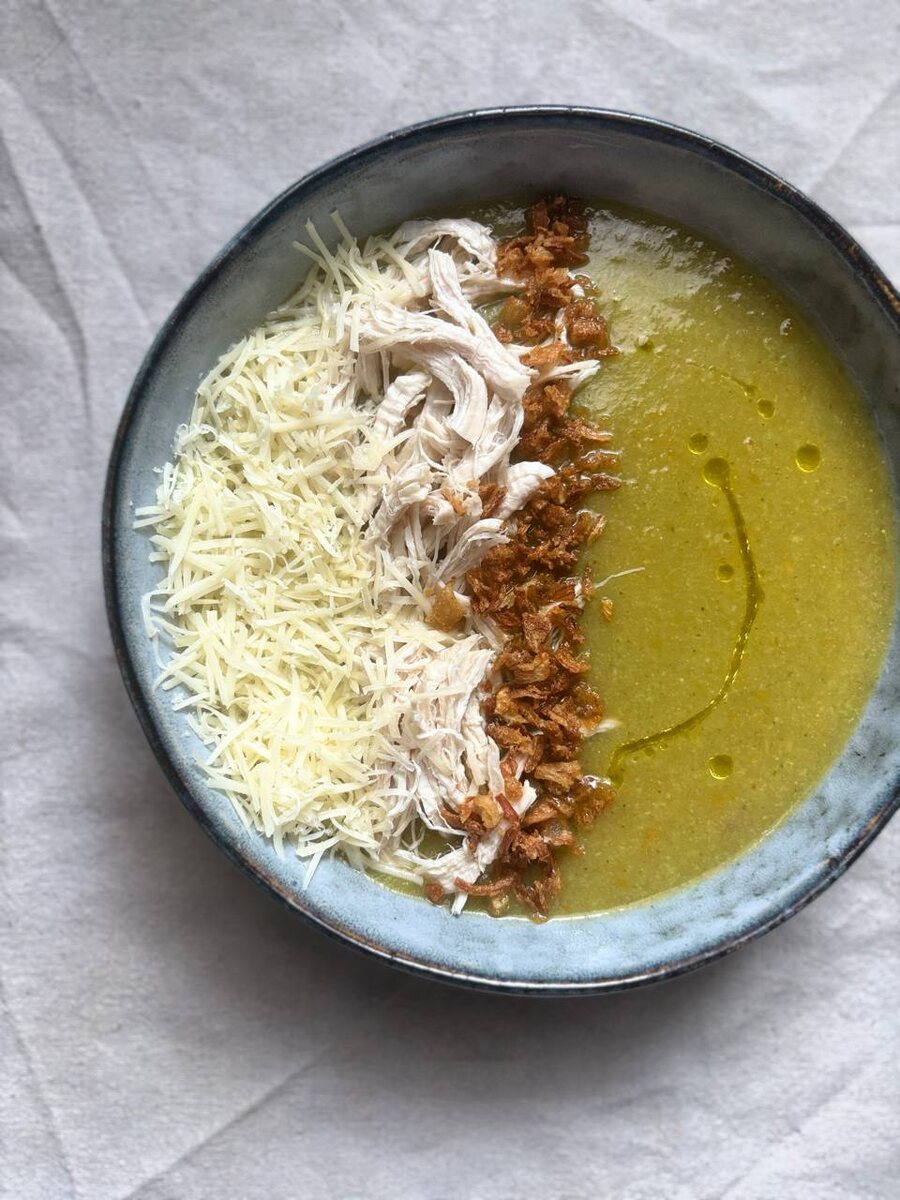 Крем-суп с курочкой и брокколи Знаете, девочки, я своего рода Гуру в том, чтобы накормить ребёнка овощами. Чего только стоят эти вафли из брокколи 😃 И супы пюре Арина ест с огромным удовольствием, просто потому, что они вкусные! А полезных овощей в нем много-много! 🍴🍴🍴 В подсоленную воду отправляю 1 куриное филе. Пока оно варится - подготавливаю овощи. У меня свежий лук, три некрупные картофелины, одна морковь и 100 грамм брокколи. Через 15 минут к курице отправляю все овощи. Варю 20-25 минут до готовности овощей. Достаю мясо и пюрирую овощи блендером. Филе разбираю по волокнам ( если планируете вечером салат - смело кидайте 2 филе, оно получается очень вкусным за счет варки с овощами) Суп заправляю ложечкой оливкового масла, подаю с мясом, пармезаном и жаренным луком. Арине делаю так же, но без лука. К такому супу вкусно сделать сухарики. А тем, кто дочитал до конца бонус совет: когда варите супы пюре, в конце варки слейте бульон в отдельную емкость так, чтобы он только покр