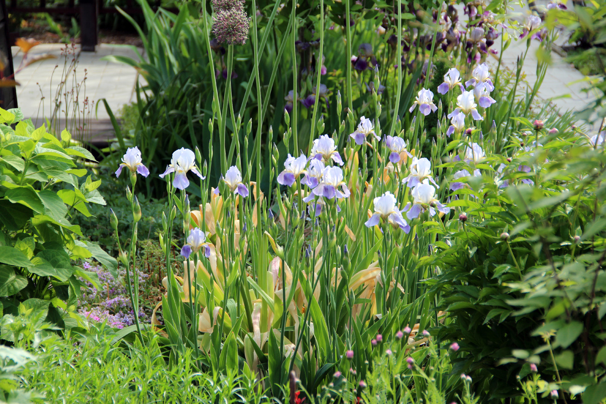 В июне у меня как всегда много фотографий. Весь месяц бурное цветение. Начну показ фото с ирисов. Первые зацвели в конце мая, а остальные подхватили эстафету в июне. Пионы в этом году не порадовали. Начали цвети и пошли сильные каждодневные дожди. Все их растрепало и мочило, но кое-какие красивые фотографии мне удалось сделать. Не могу не показать розы. У меня их осталось не много, но самые выносливые и красивые. В этом году шикарно процвели ранние лилейники. Они у меня в бордюре и в одиночных посадках. Дельфиниумы я люблю, но очень сильно их уменьшила. Дают обильный самосев, постоянно болеет ботва и нужно подвязывать. Как фоновые растения или вертикали в глубине цветника эти синеглазые красавцы очень хороши. В прошлые годы намучилась я со скумпией кожевенной. Обмерзала до земли, болела грибковыми заболеваниями. В прошлом году цвела, но очень низко. А в этом она показала всю свою красоту. Не устаю любоваться. Огромный куст, цветущий очень интересными пушистиками. Не даром ее называют
