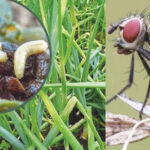 (Дата публикации: 14.07.2025) Луковая муха – очень опасный вредитель, которого невозможно обнаружить до того момента, когда уже вред нанесен, и урожай спасти практически невозможно. Весенний лет луковой мухи начинается в то время, когда почва прогрета. Обычно лет совпадает с массовым цветением одуванчиков и цветением вишни. В нашем регионе – это первая декада мая. Далее идет период яйцекладки, который может длиться 1,5 месяца, пока цветут плодовые деревья. Ущерб растениям наносят личинки луковой мухи. Взрослая особь откладывает яйца в почву, рядом с луковицами, либо на самих растениях у шейки зеленого пера. Через 5-7 дней из яиц вылупляются личинки, похожие на маленьких червячков, длиной около 1 см. Личинки проникают в луковицу, подгрызая донце или через шейку луковицы. В одной яйцекладке может быть 5-10 личинок, которые в последствие внедряются в луковицу. 1 взрослая особь может отложить до 200 яиц. Питаются личинки сочными чешуями лука, что приводит к загниванию луковицы и гибели все