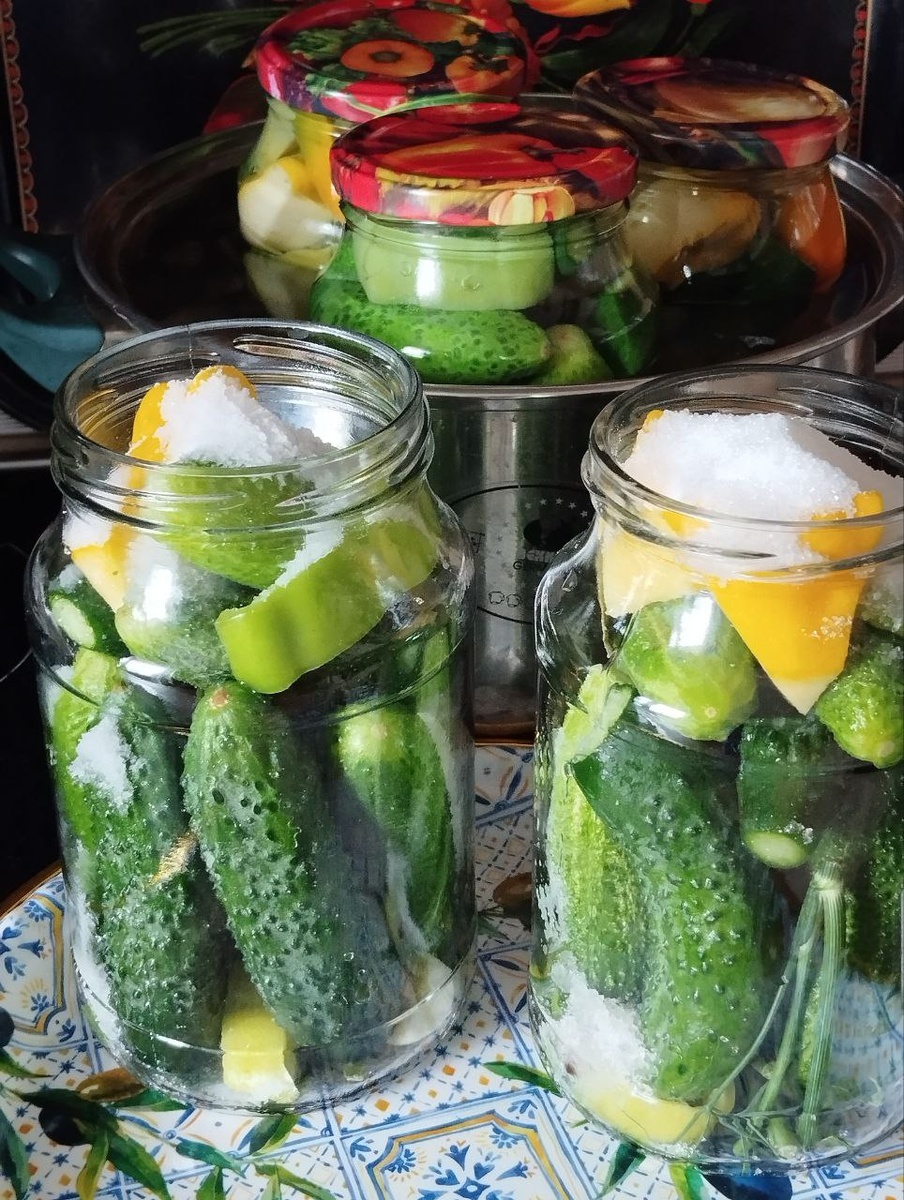 Способ второй не хуже но наверняка! ✅ На литровую банку: 17 гр, соли 13 гр, сахара 2 ст.л уксуса 9% Зелень любая , лавр. лист . горошек черного перца сюда же, можно зерна горчицы. ✅ Банки промыть с содой ополоснуть и уложить огурцы ,зелень, чеснок, специи , на ваш вкус ! Туда же соль, сахар и залить кипятком. Банки с огурцами поставить стерилизоваться на 15 -10 минут после как закипит , прикрыв крышками. В конце добавить уксус и закатать любым вашим методом! Банки перевернуть и укутать! #консервация #соленья #кухнякаримы #маринованныеогурцы #соленыеогурцы #кухня